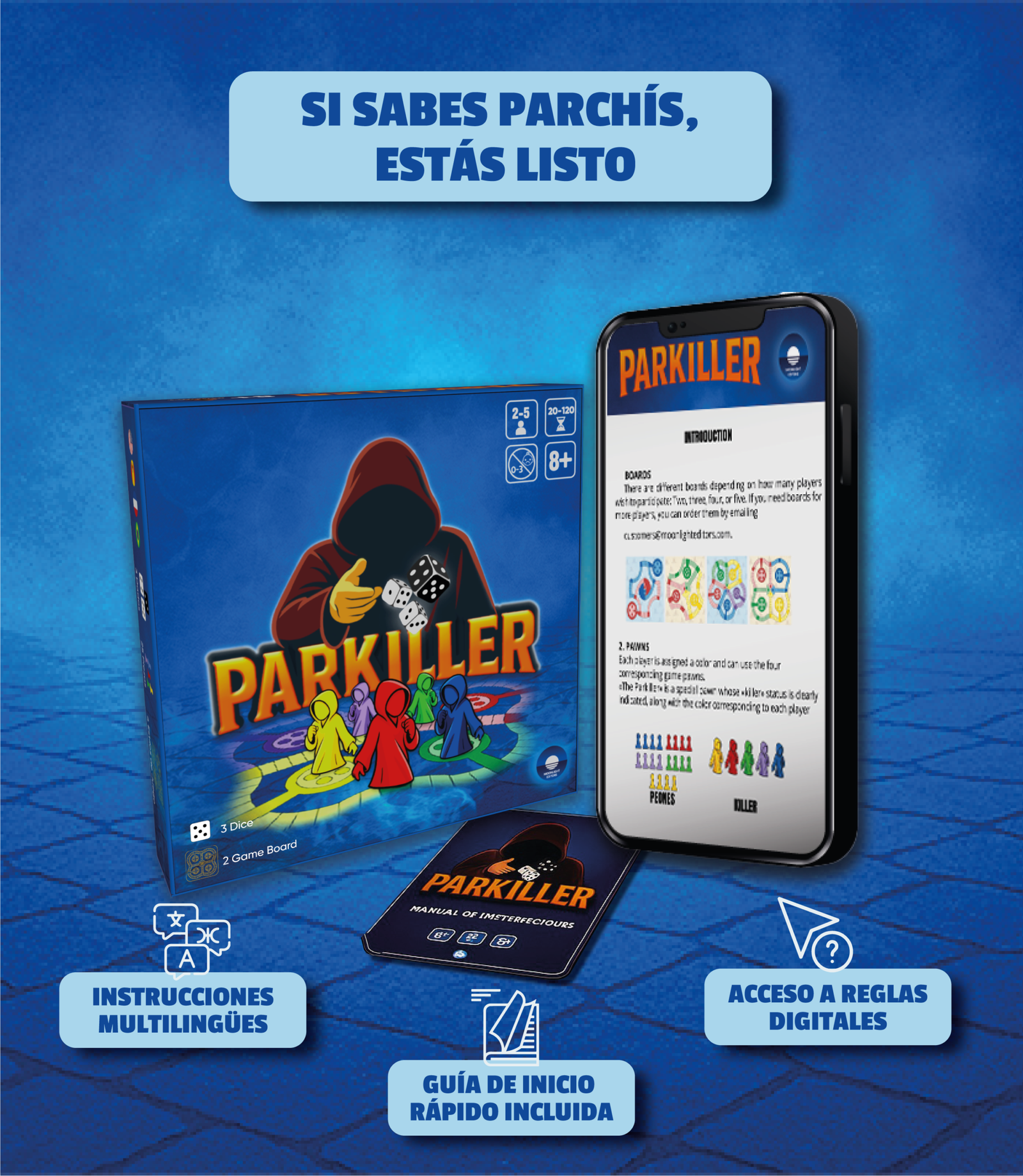 Con un tablero modular para 2 a 5 jugadores, partidas más dinámicas y un elemento sorpresa: ¡el temido Killer! Una ficha especial que arrasa con todo a su paso y cambia el rumbo del juego en segundos.